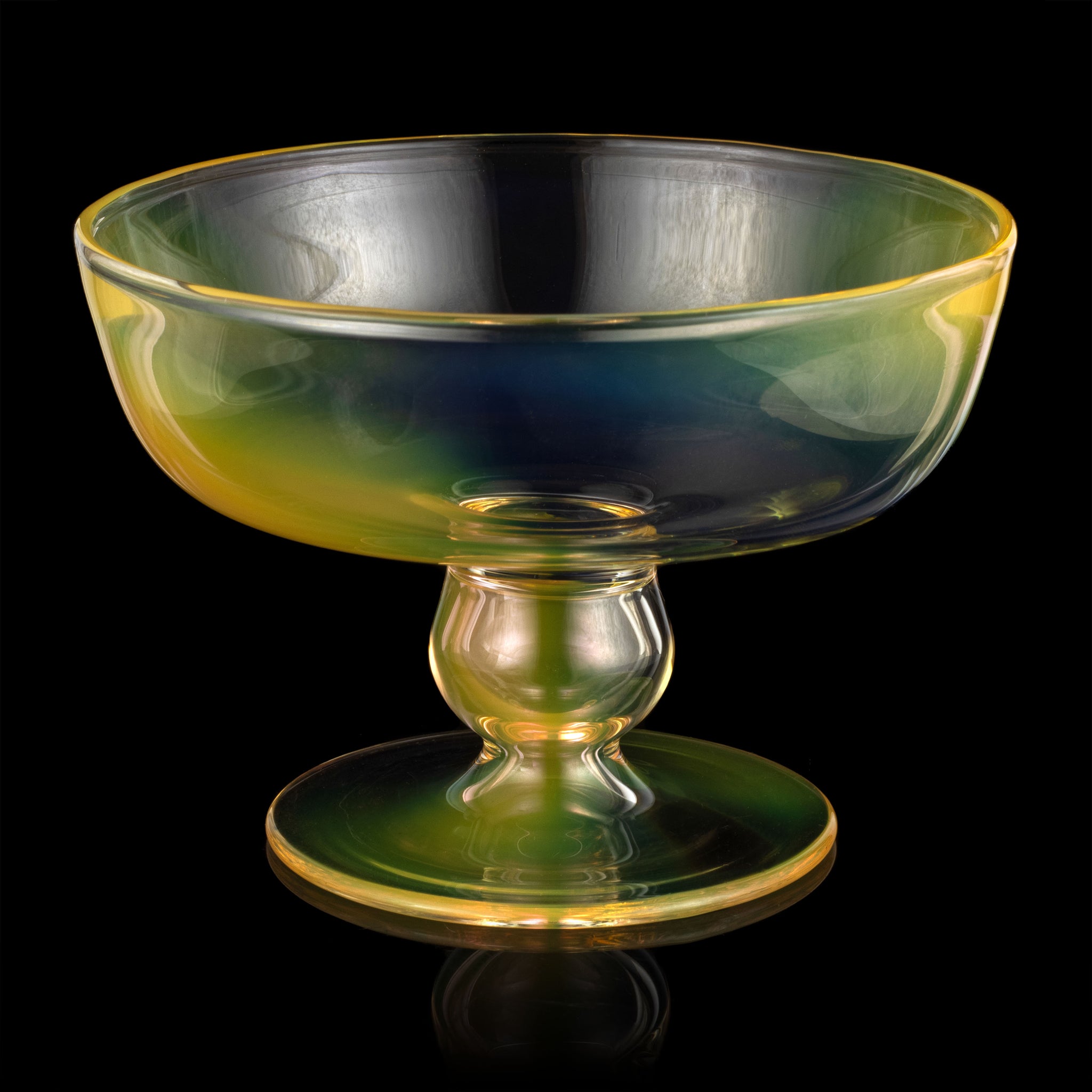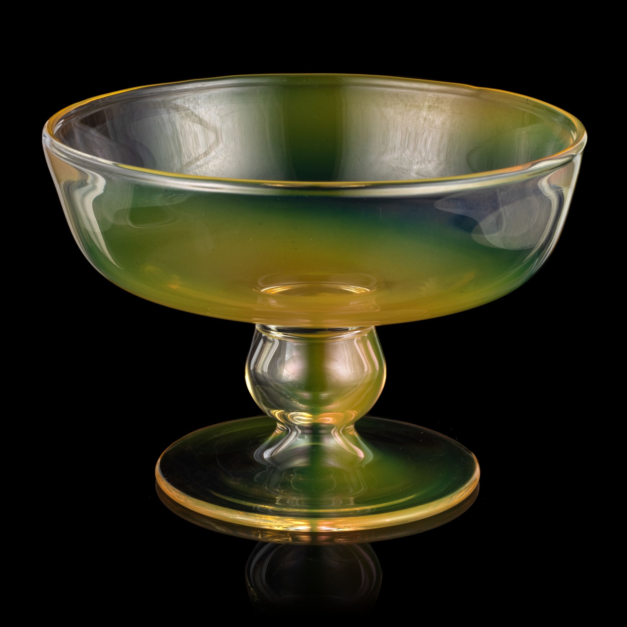 Flameworked glass with fumed gold and silver incased glass.