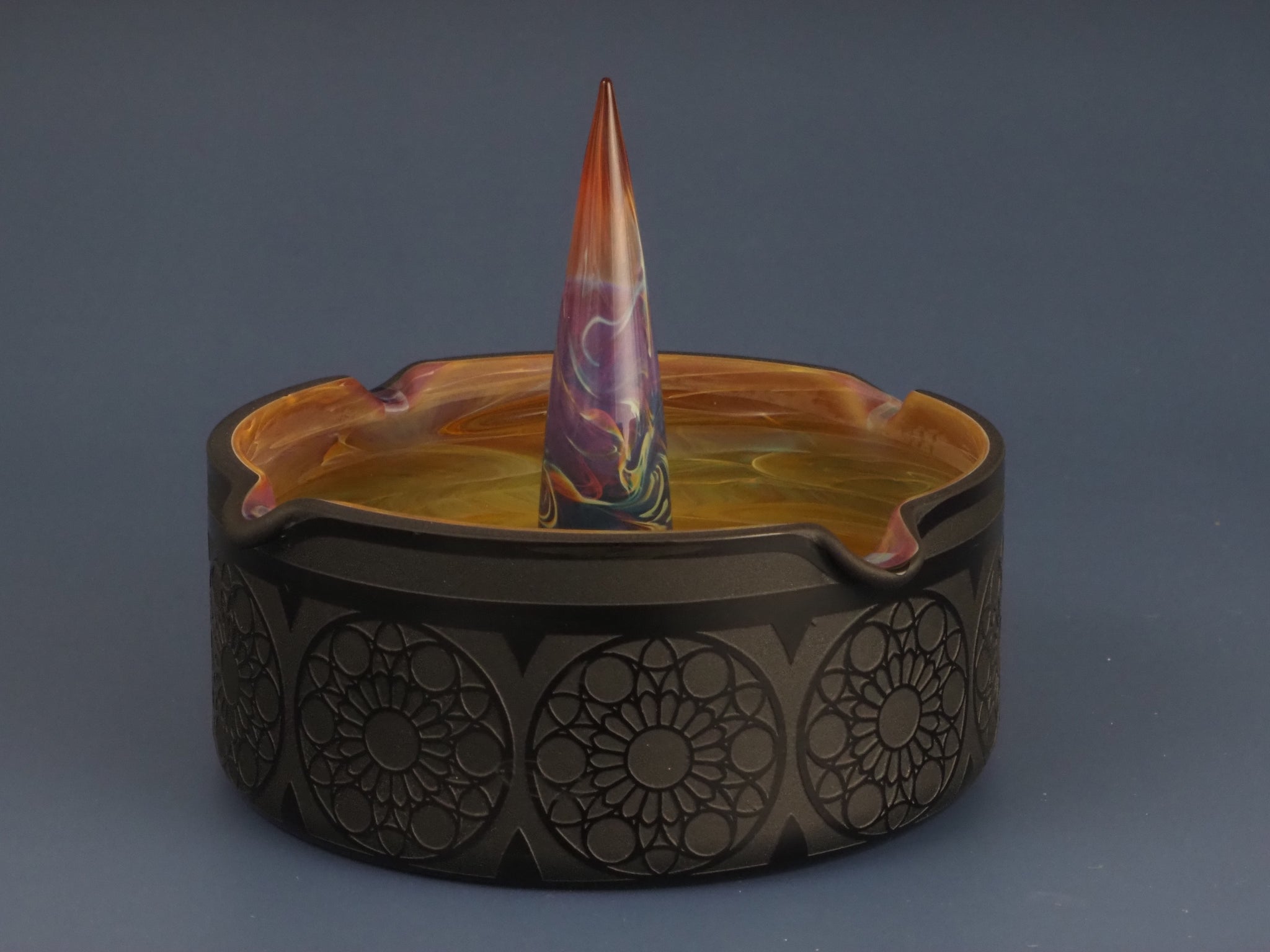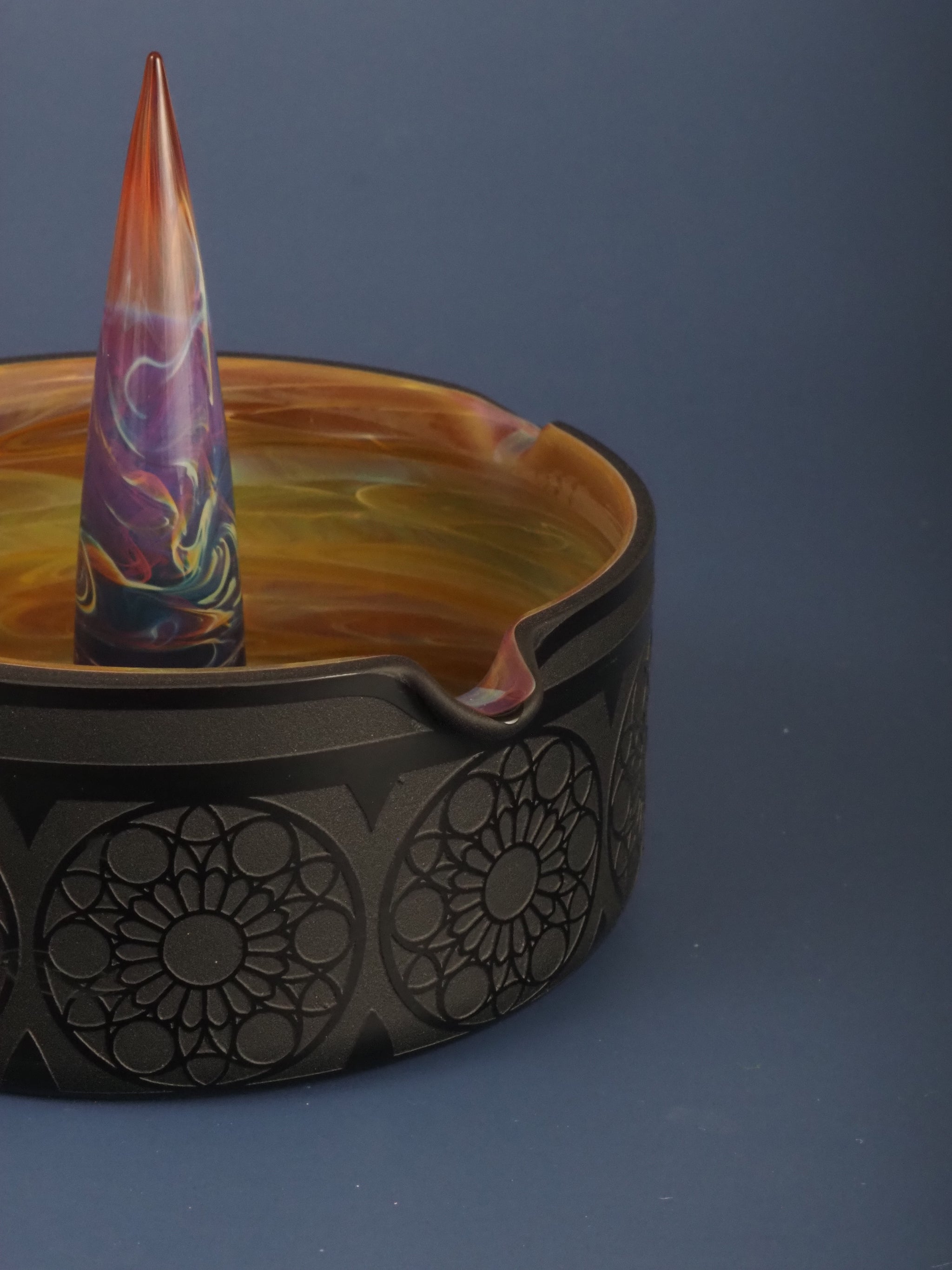 "ST-3" is a glass ashtray made by JDZ Glass for JustAnotherGallery's 4th Annual "Cashed" event taking place during Parlay 2025. Comes with a JAG Certificate of Authenticity.