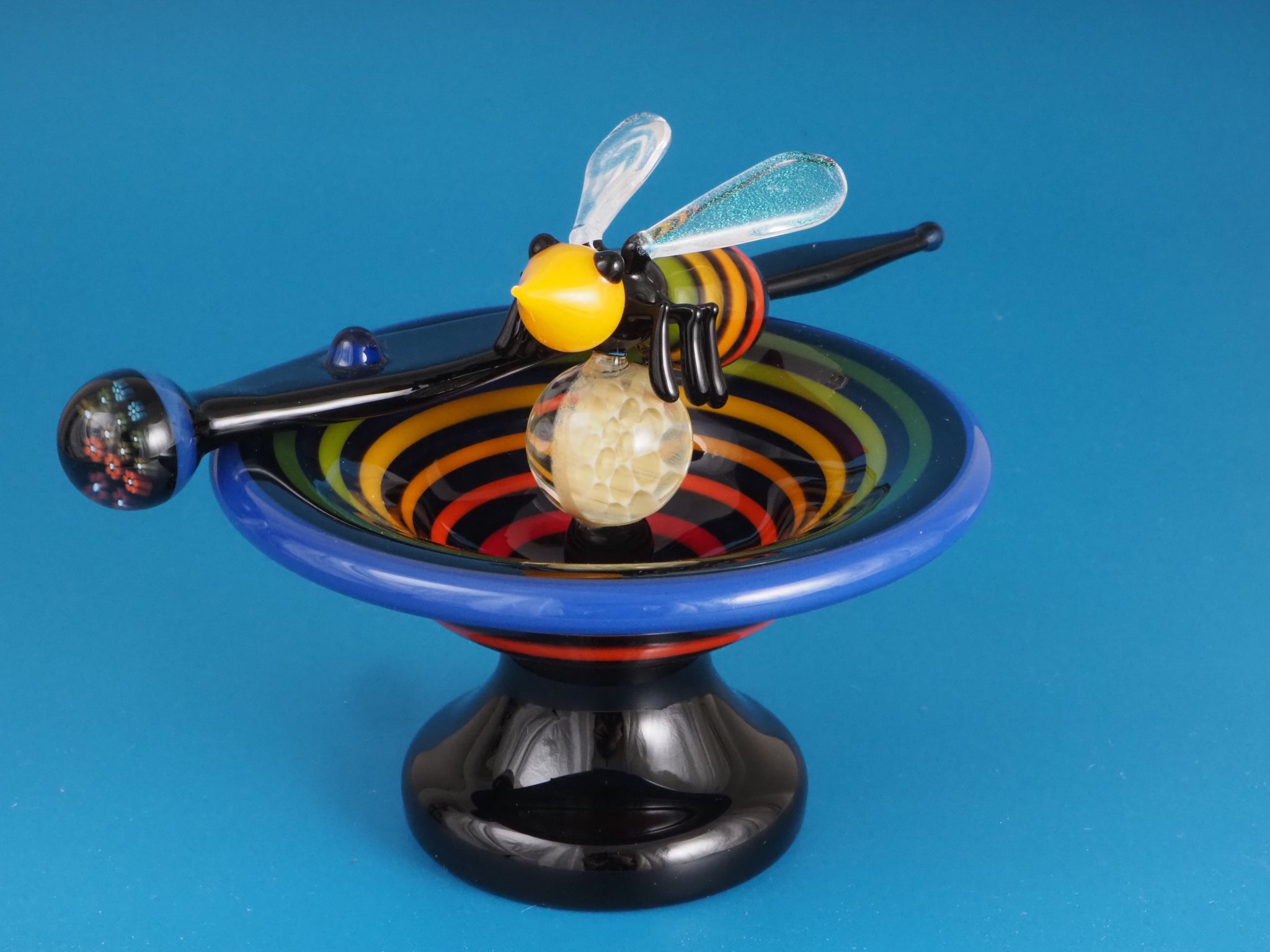 "Bee-Rainbow" is a glass ashtray made by Smiley for JustAnotherGallery's 4th Annual "Cashed" event taking place during Parlay 2025. Comes with a JAG Certificate of Authenticity.